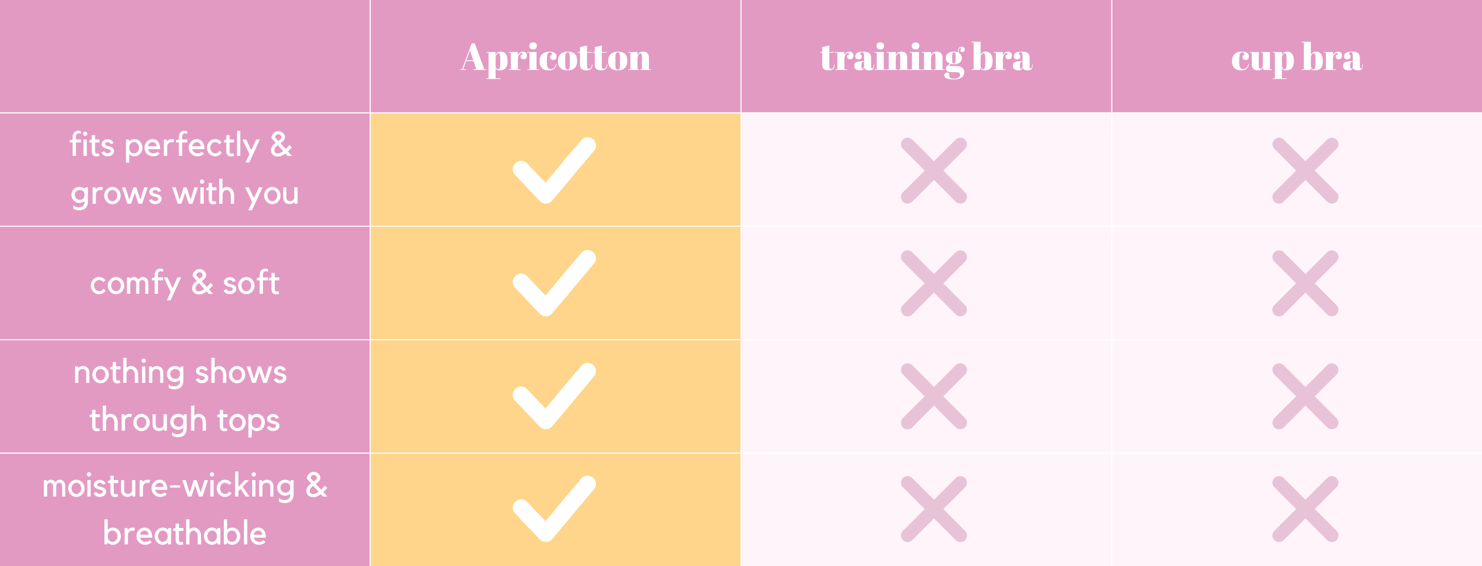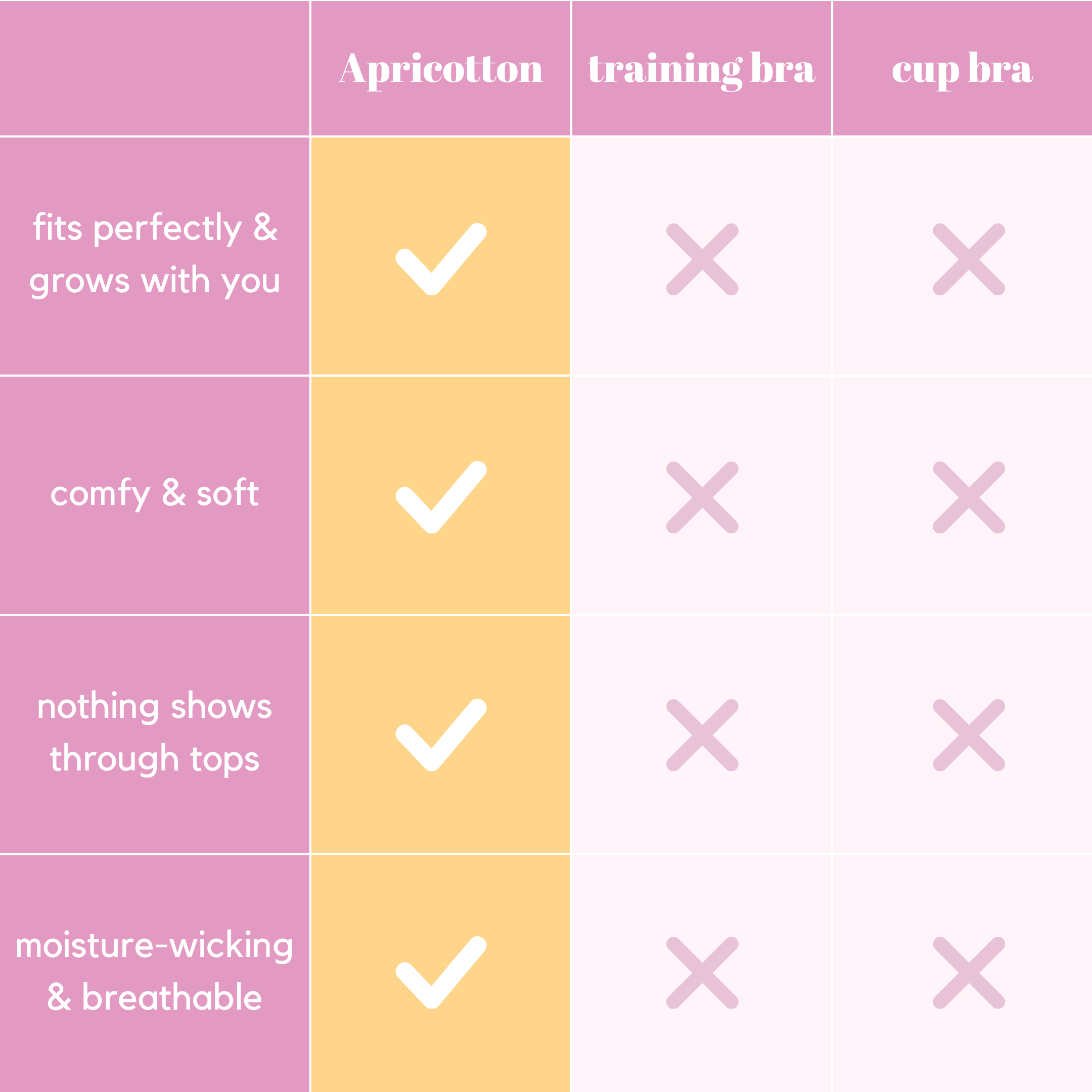 every bra grows with you from when you're flat chested to when you finish developing with Apricotton Magic™