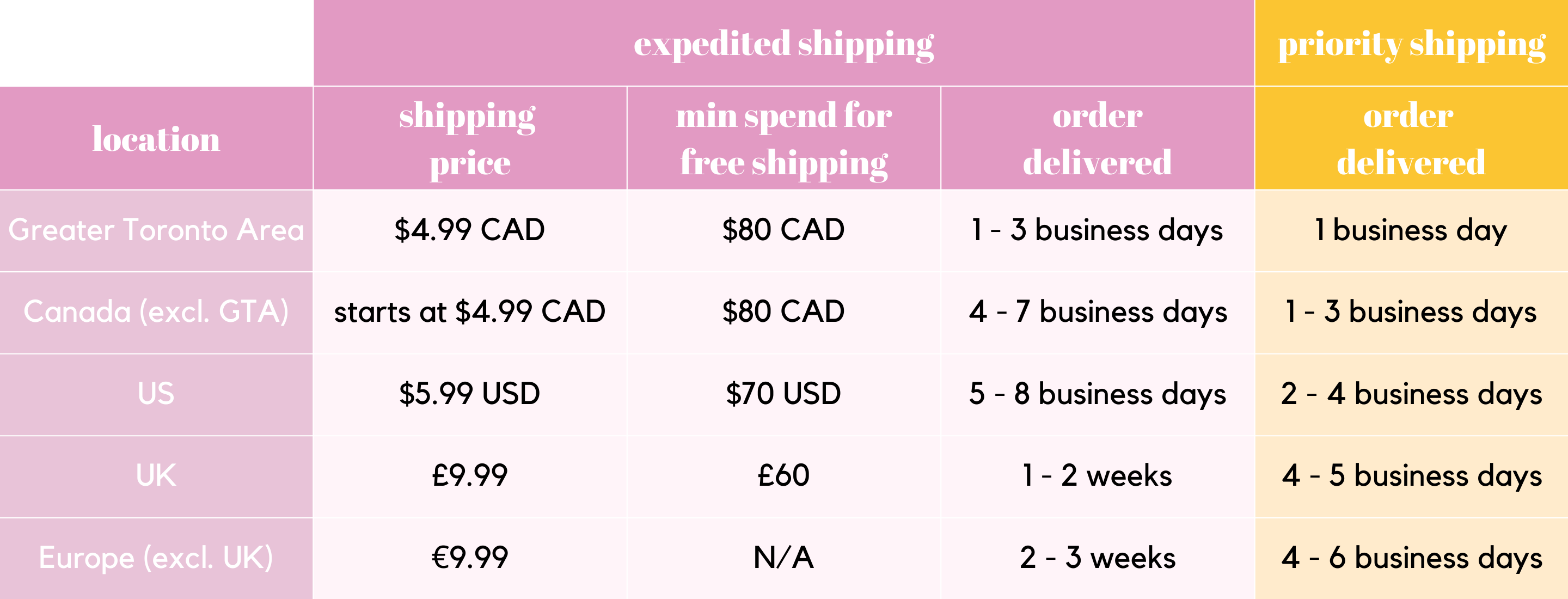 shipping prices & times